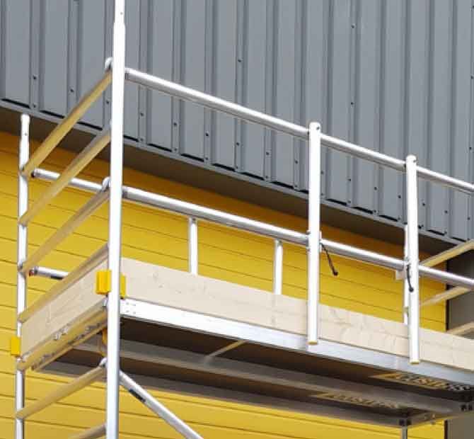 Popolnoma zložljive priročne ploščadi z dvostranskimi zatiči za varovanje proti vetru so izjemno uporabniško prijazne. Profil z oprijemom na vsestransko varjenih prečkah zagotavlja optimalen oprijem za varno plezanje in rokovanje med montažo.